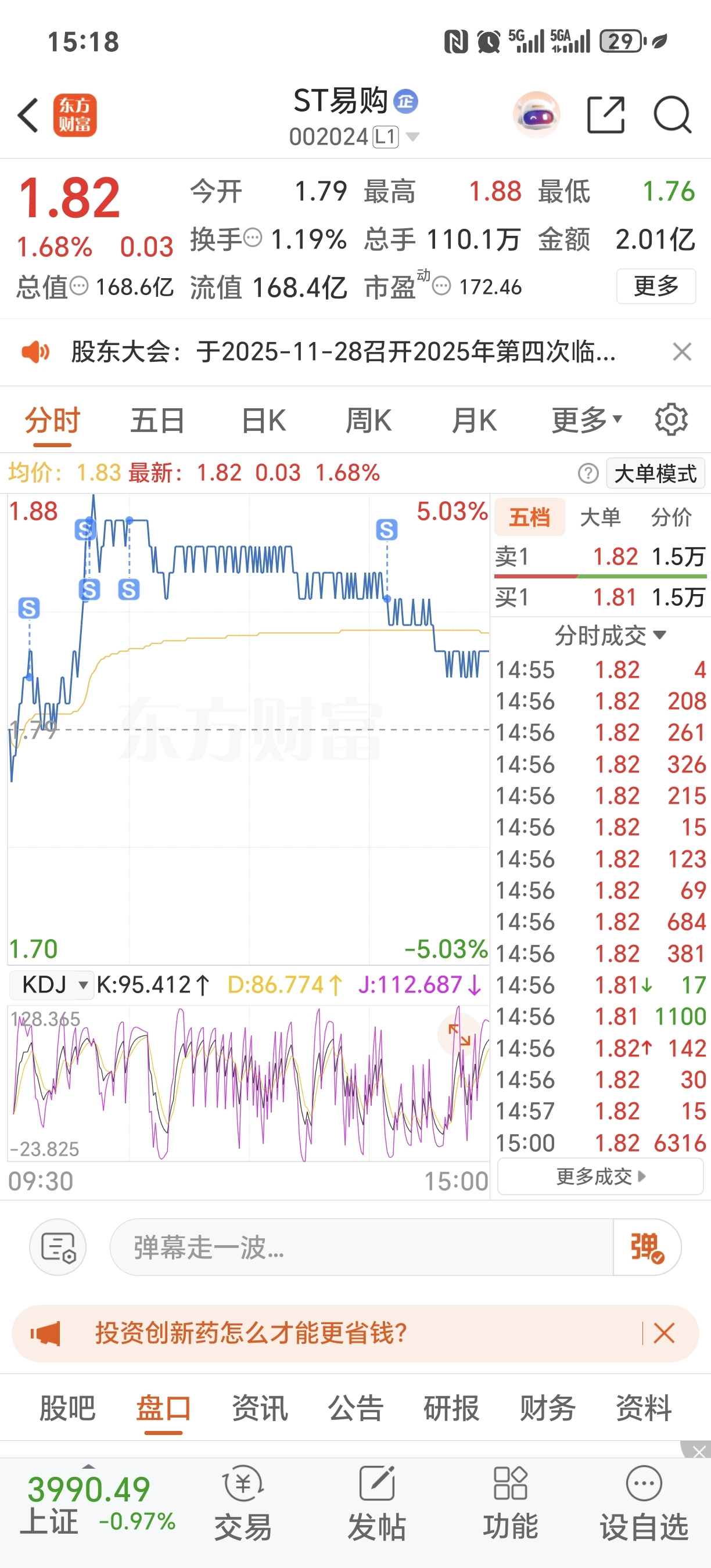 $ST易购(SZ002024)$ 意料之中的事,再见