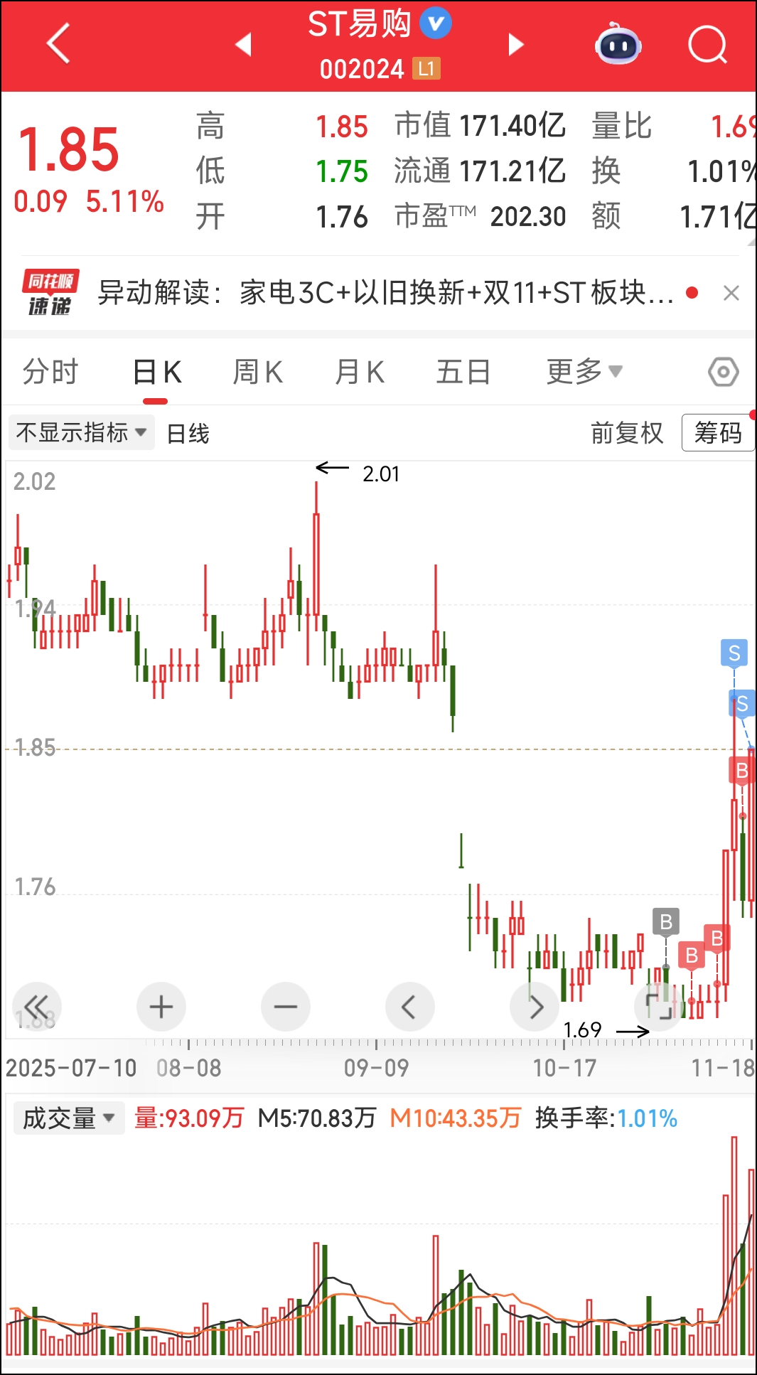 $ST易购(SZ002024)$ 连续涨停板要来了,姐只能说这么多,嘻嘻#收盘点评#