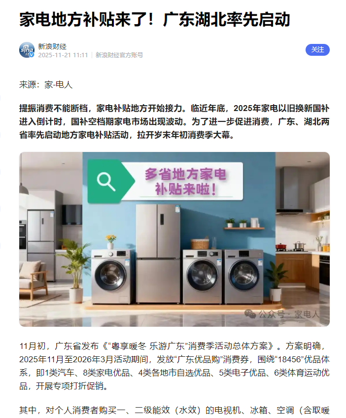 湖北、广州、安徽地方家电补贴来了,继续买买买