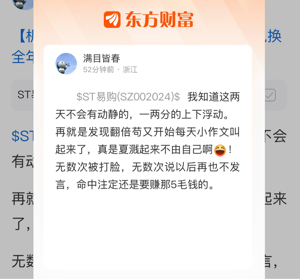 温馨提示: 1.根据《证券法》规定,禁止编造、传播虚假信息或者误导性信息,扰乱证券市场;2.用户在本社区发表的所有资料、言论等仅代表个人观点,与本网站立场无关,不对您构成任何投资建议。用户应基于自己的独立判断,自行决定证券投资并承担相应风险。《东方财富社区管理规定》