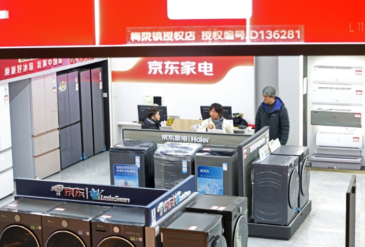 京东家电线下门店,前来问询“国补”政策的顾客络绎不绝。