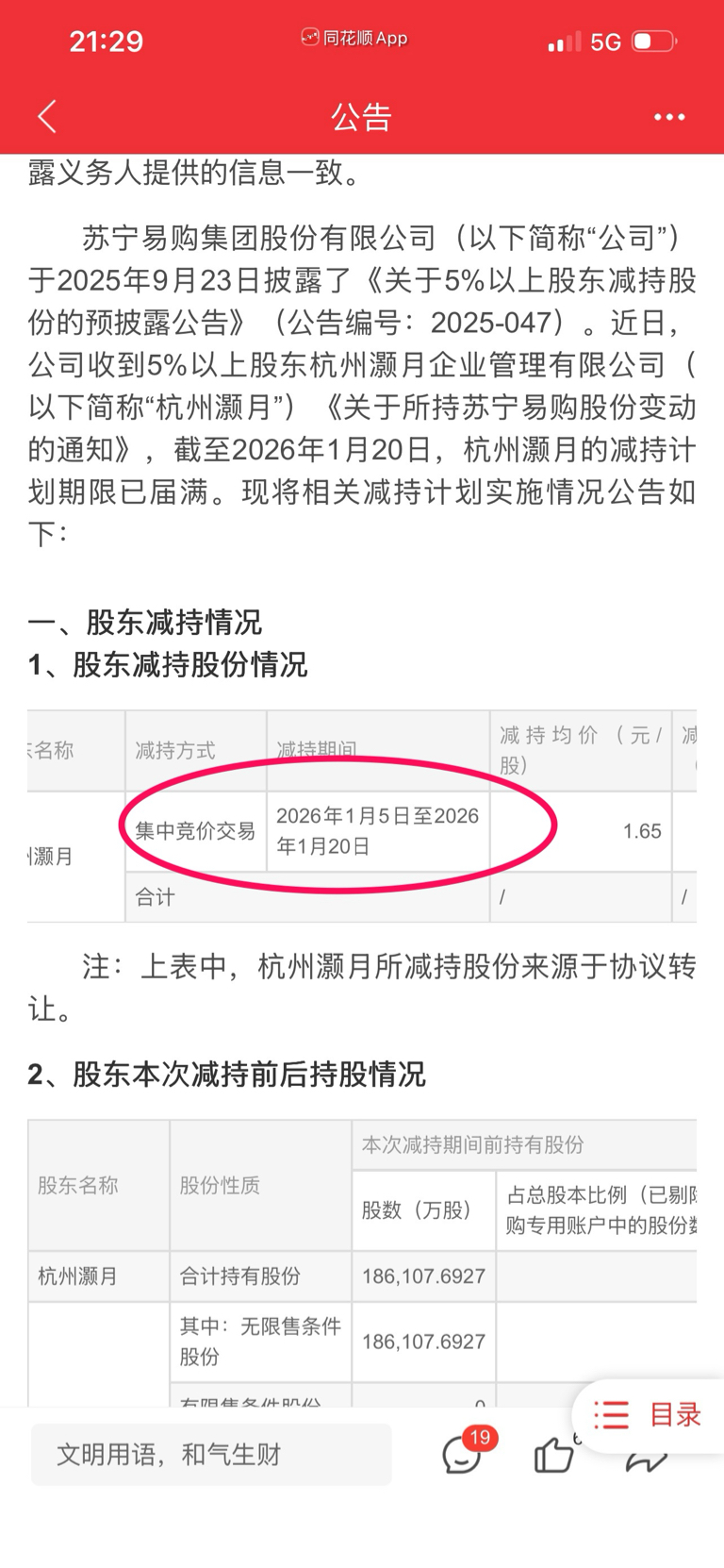 大家记住1月5号这个日子,易购公告苏宁系重整通过,阿里卡在这个点开始减持,前面明