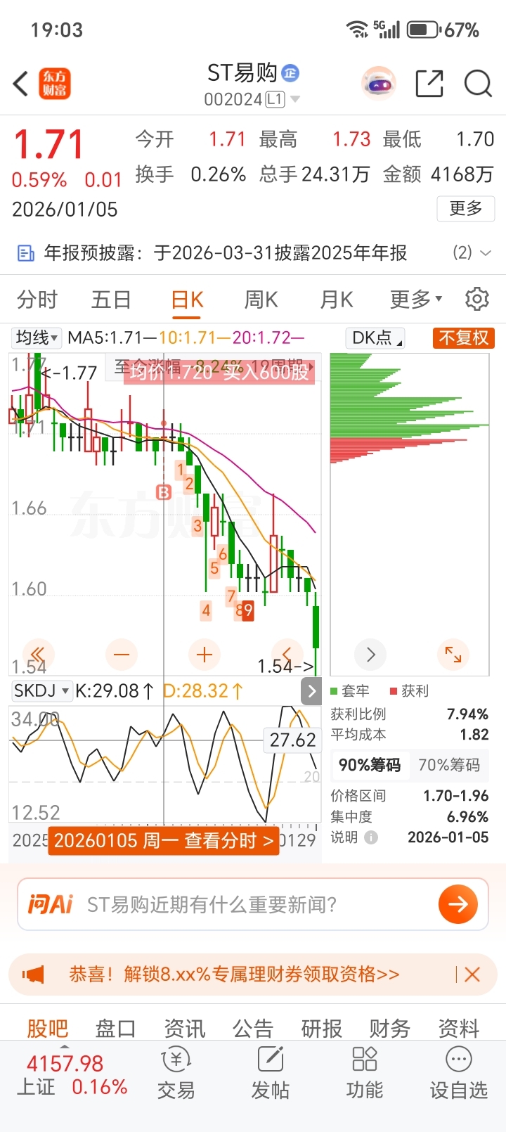 $ST易购(SZ002024)$ 这主力厉害,只为了600股就把我挂在山顶上