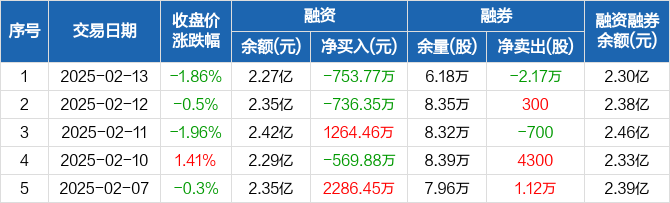 航天电器:融资净偿还753.77万元,融资余额2.27亿元(02-13)