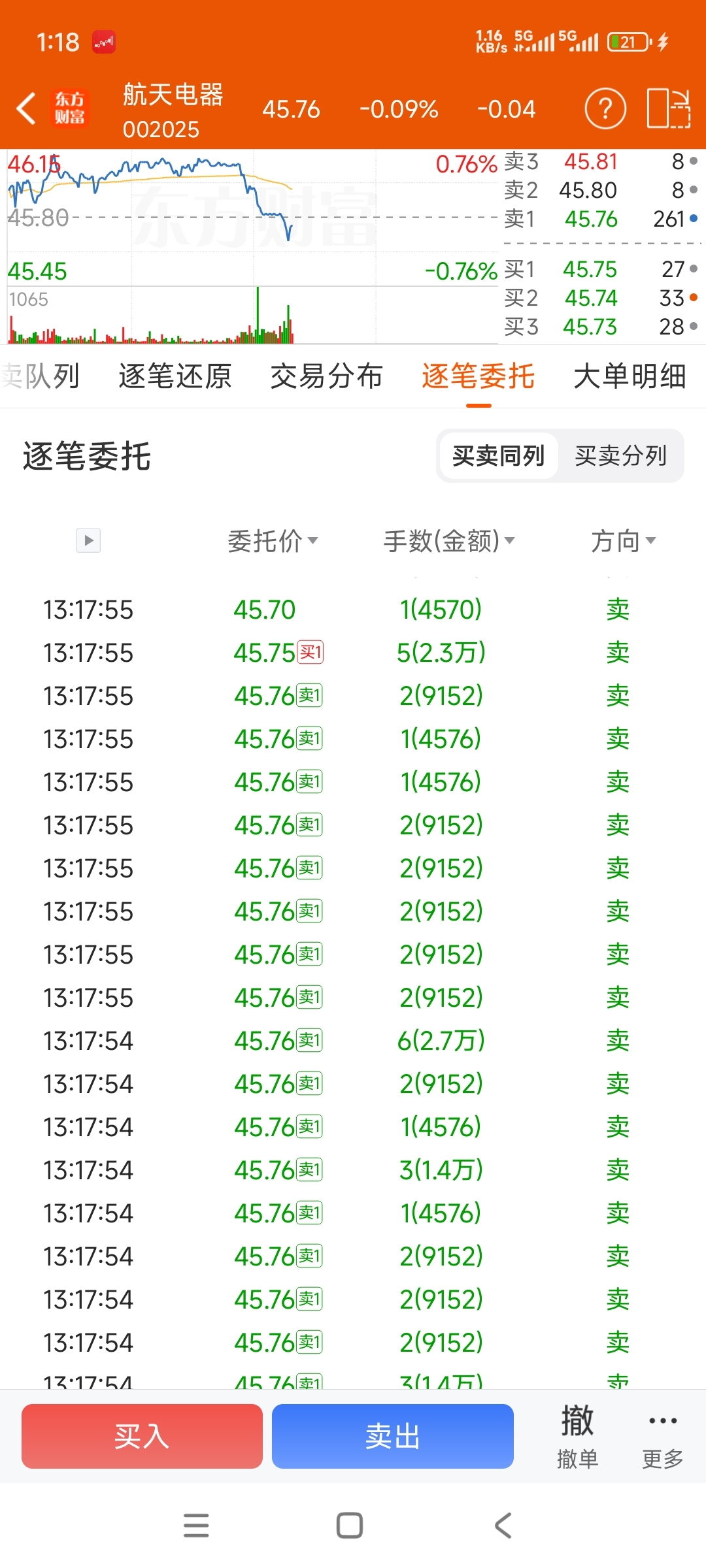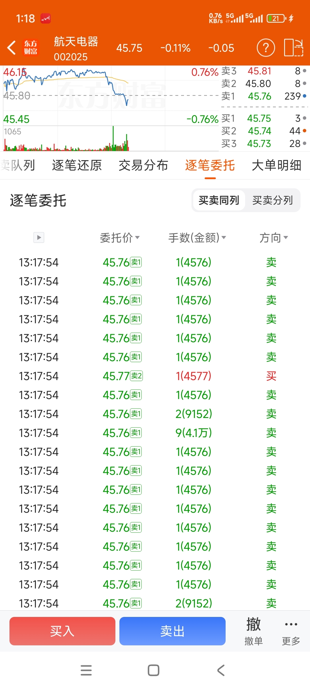 量化小单出货中,一秒可以挂单好几十笔单子,请问你们的手速有电脑快吗?赶快远离此股