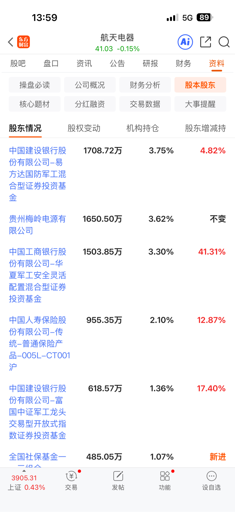 $航天电器(SZ002025)$ 这些基金三季度50块进来砸盘到41块.....亏本也要砸盘,这亏的是谁的钱一点都不心疼!!!