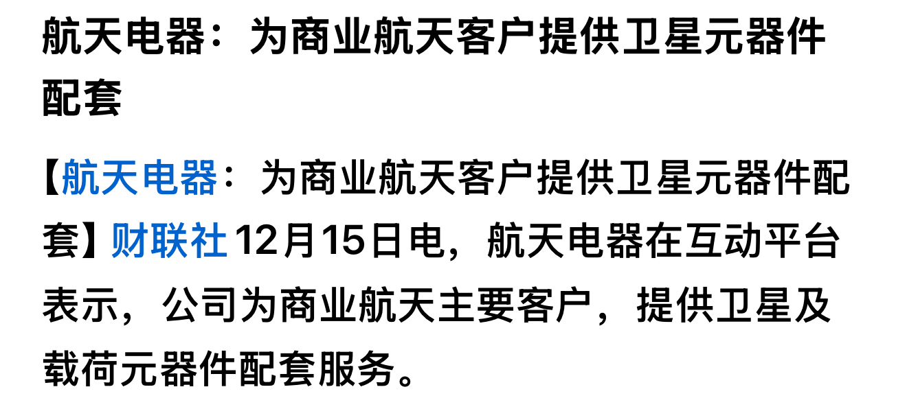 $航天电器(SZ002025)$ 航天电器占比商业航天配套高,如果涨的话,是有支撑逻辑的,目前都是跟风