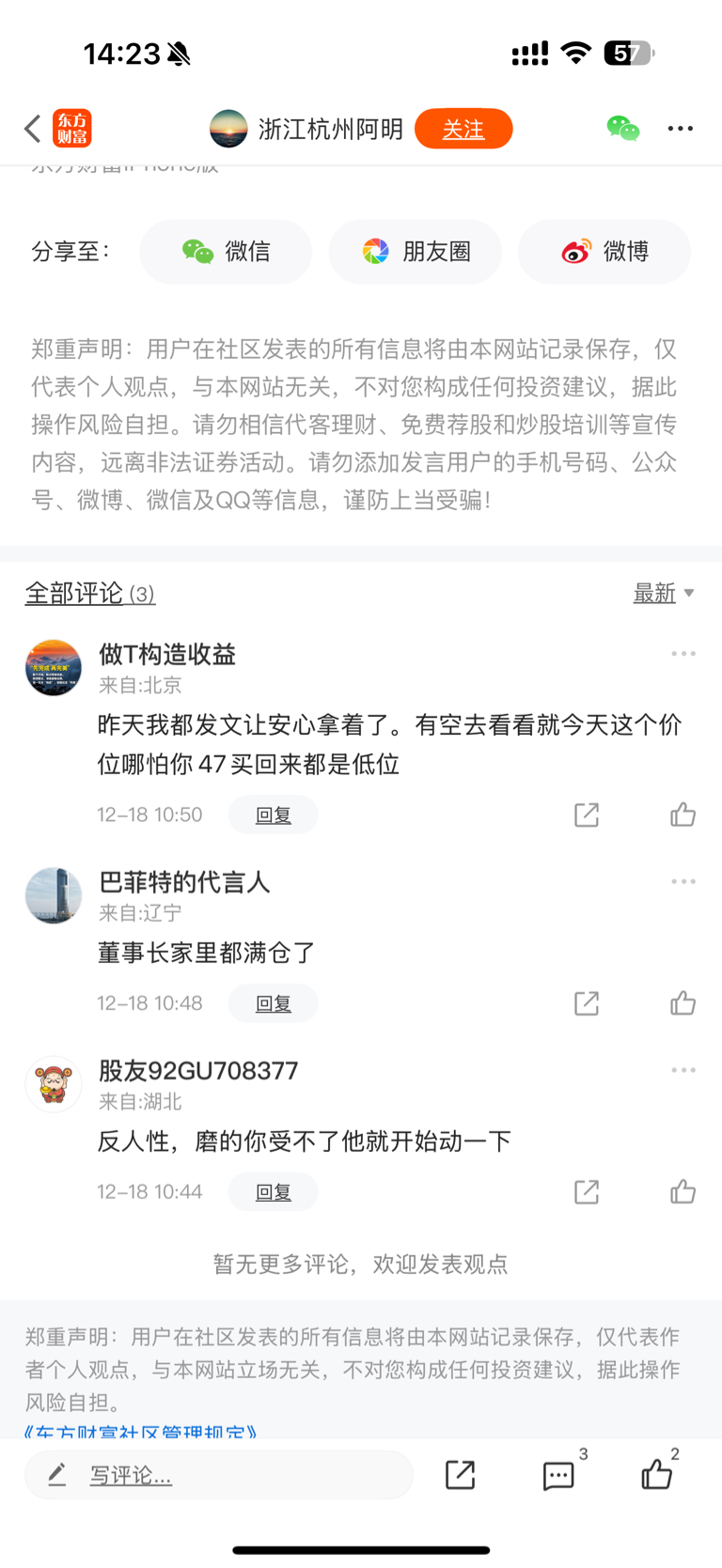 温馨提示: 1.根据《证券法》规定,禁止编造、传播虚假信息或者误导性信息,扰乱证券市场;2.用户在本社区发表的所有资料、言论等仅代表个人观点,与本网站立场无关,不对您构成任何投资建议。用户应基于自己的独立判断,自行决定证券投资并承担相应风险。《东方财富社区管理规定》