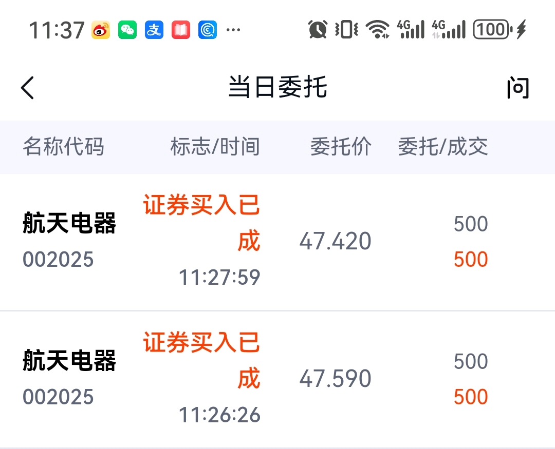 $航天电器(SZ002025)$ 买了2万块钱,一分钟就跌了1毛7