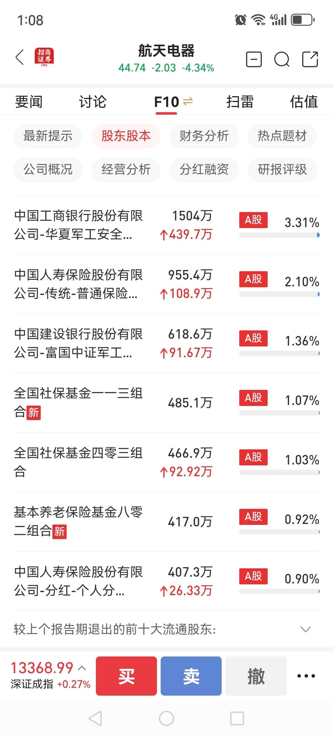 $航天电器(SZ002025)$ 社保资金,大力增持,走出跨年行情来!