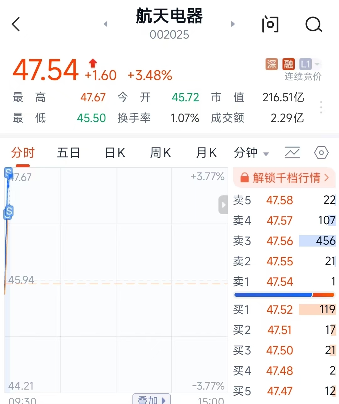 $航天电器(SZ002025)$ 开盘即收工,下班