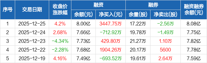 航天电器:融资余额8亿元,创近一年新高(12-25)