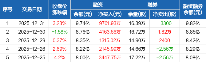航天电器:融资余额9.74亿元,创近一年新高(12-31)