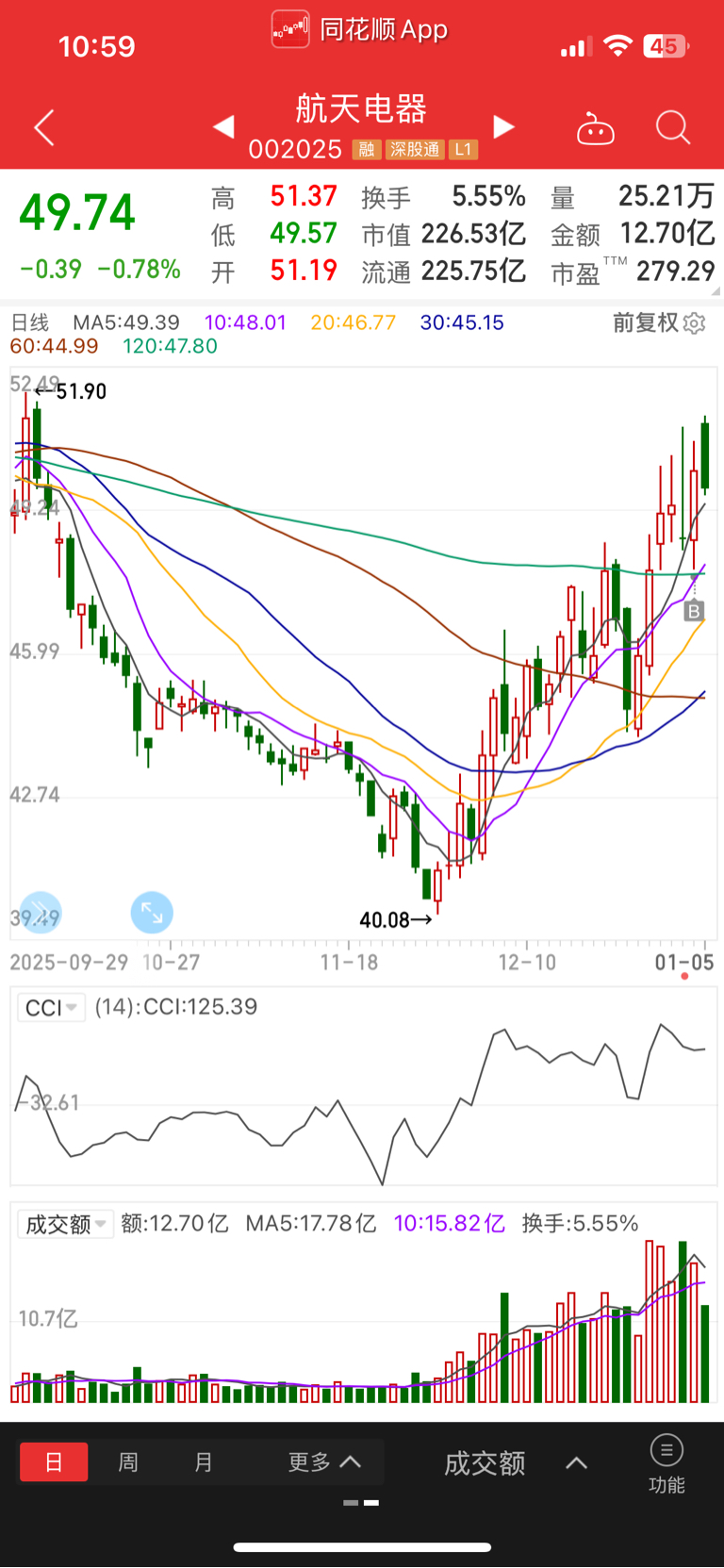 $航天电器(SZ002025)$ 高开低走就结束了,遇到好多中低位股这种走势都是绿盘,第二天还绿的那种,早盘先撤了。