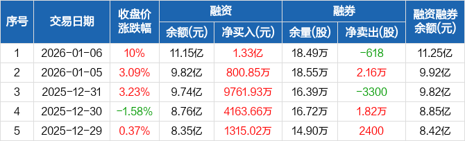 航天电器:融资余额11.15亿元,创近一年新高(01-06)