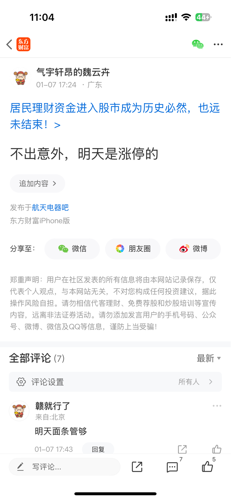 温馨提示: 1.根据《证券法》规定,禁止编造、传播虚假信息或者误导性信息,扰乱证券市场;2.用户在本社区发表的所有资料、言论等仅代表个人观点,与本网站立场无关,不对您构成任何投资建议。用户应基于自己的独立判断,自行决定证券投资并承担相应风险。《东方财富社区管理规定》