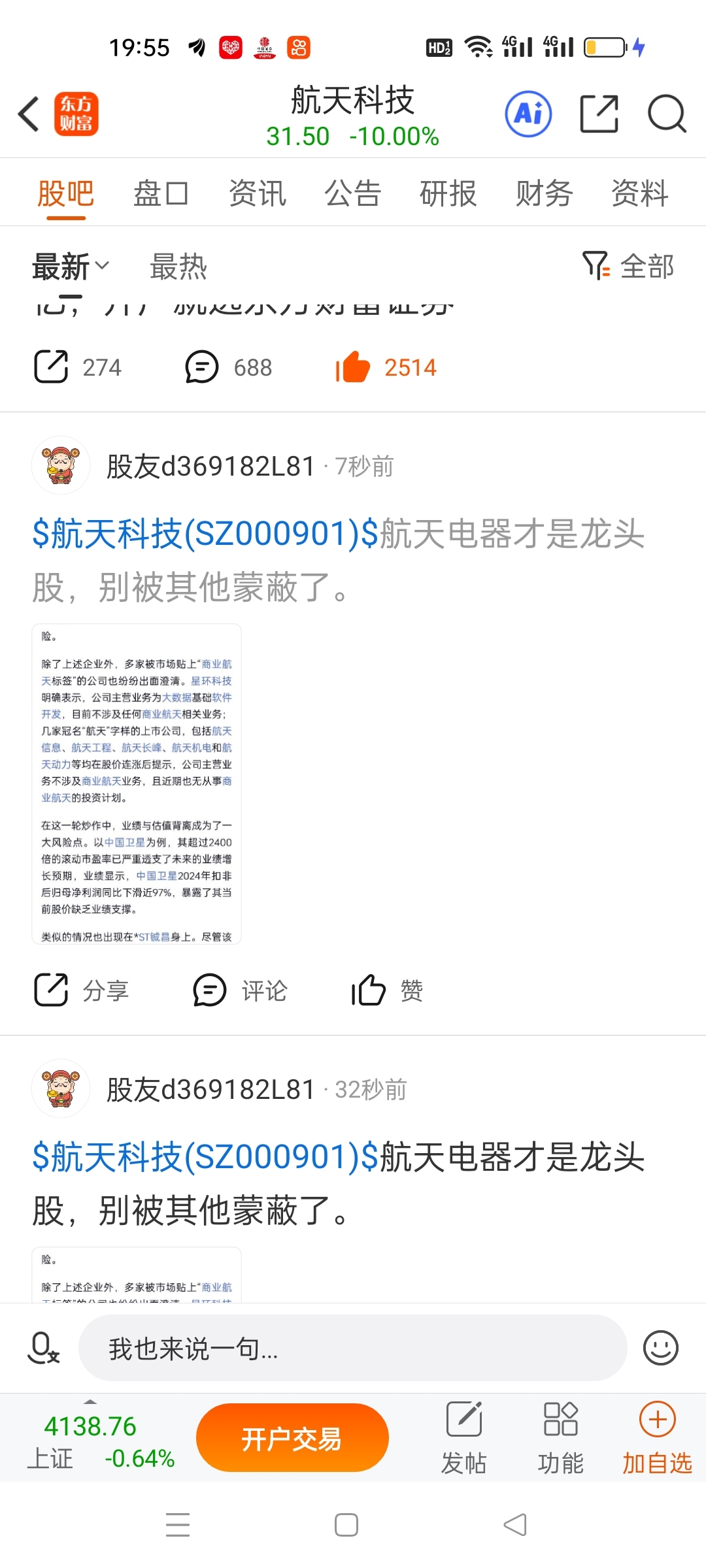 航天电器才是龙头股,别被其他蒙蔽了。去他们那里我都发图了,大伙也去传播一下,让他