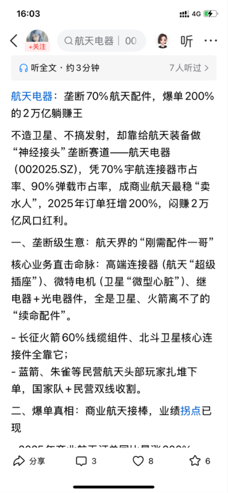 $航天电器(SZ002025)$ 航天电器,宇航连接器的龙头之一,怕个毛线,只是他没有被大柚子和大机构进场,呼叫陈小群进场