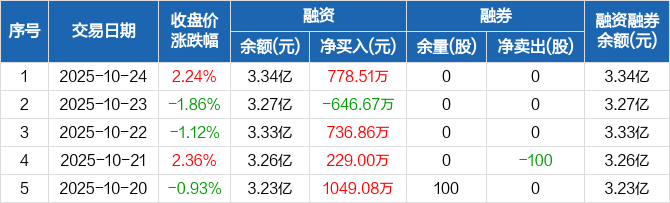 山东威达:融资净买入778.51万元,融资余额3.34亿元(10-24)