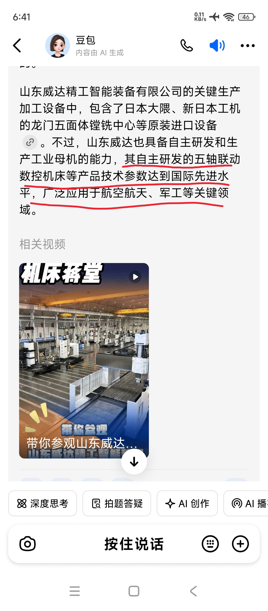 $山东威达(SZ002026)$ 自己研发五轴工业母机,达到国际领先水平,不得了,不得了