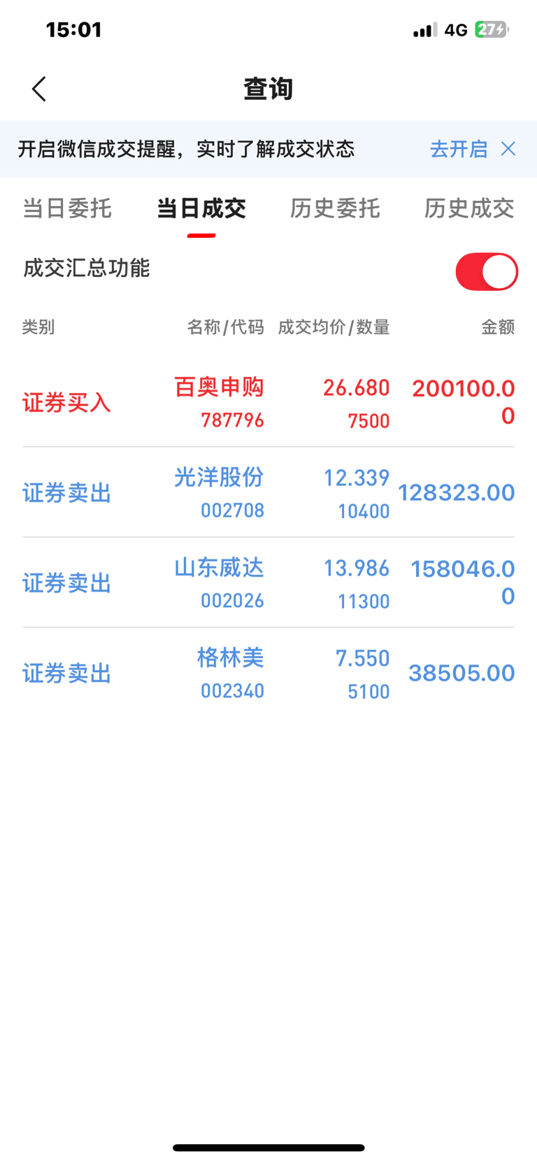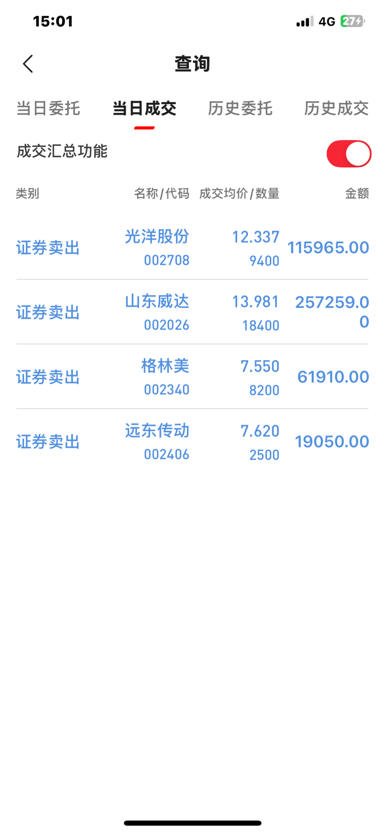 今天收盘前集合竞价“光洋股份,威达股份,全部清仓。不是不看好,只是觉得今天是11月份最后一个交易日,指数必须红。我是和情绪反著来的,个人感觉这两个票五天线还会回踩,到时候再进吧!11月份操作难度是“地狱级”的,现在保住那一点点胜利成果可能更重要,个人观点,不作为任何投资决策。 //@华业街之狼 :清算要到今天晚上12点以后才能出来,明天才能看到11月份的收益。我估计总收益11月份五六个点应该是有的,跑赢全国90%以上的人应该是肯定的,具体数字还是以中登公司结算报告为准吧。@上帝之手 @红太狼27000