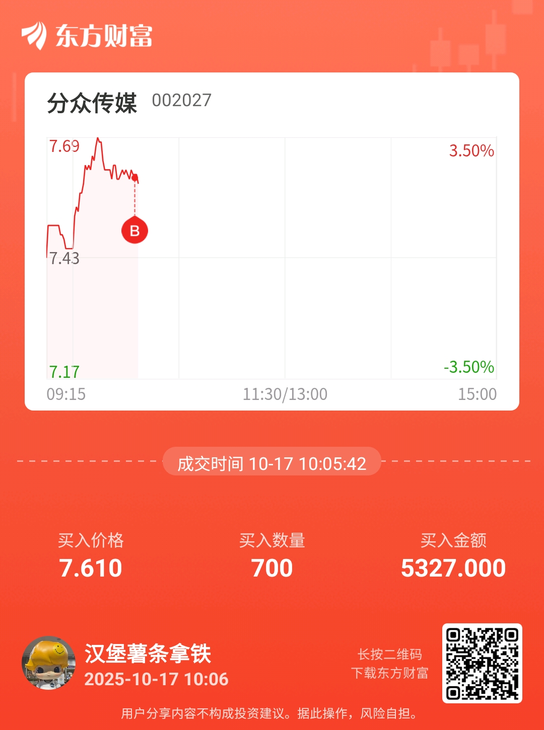 $分众传媒(SZ002027)$ 建仓 1000 股
