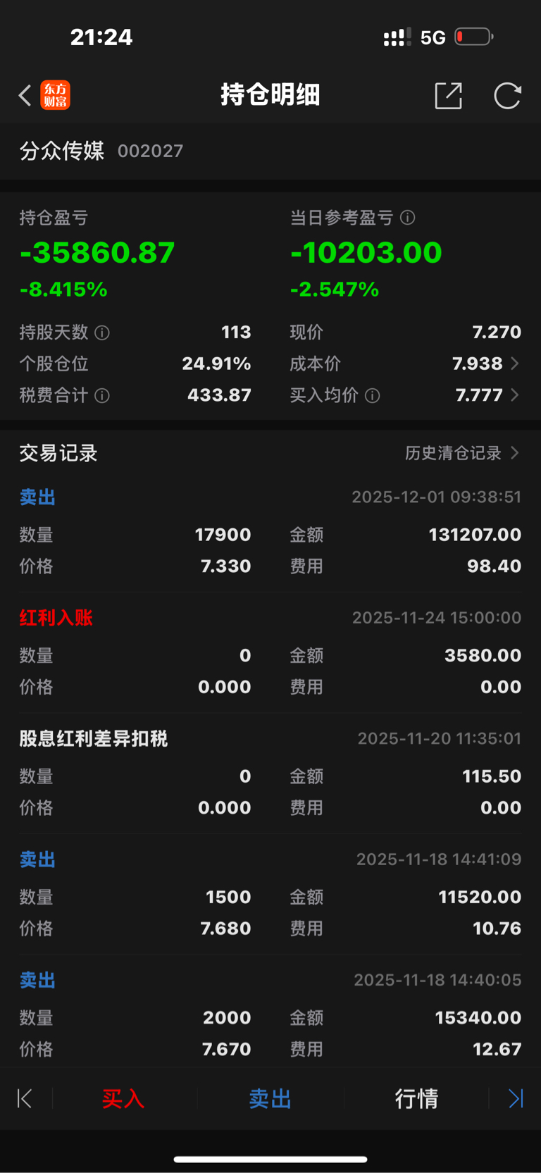 $分众传媒(SZ002027)$ 我已经仁至义尽了,放进去就没见红过