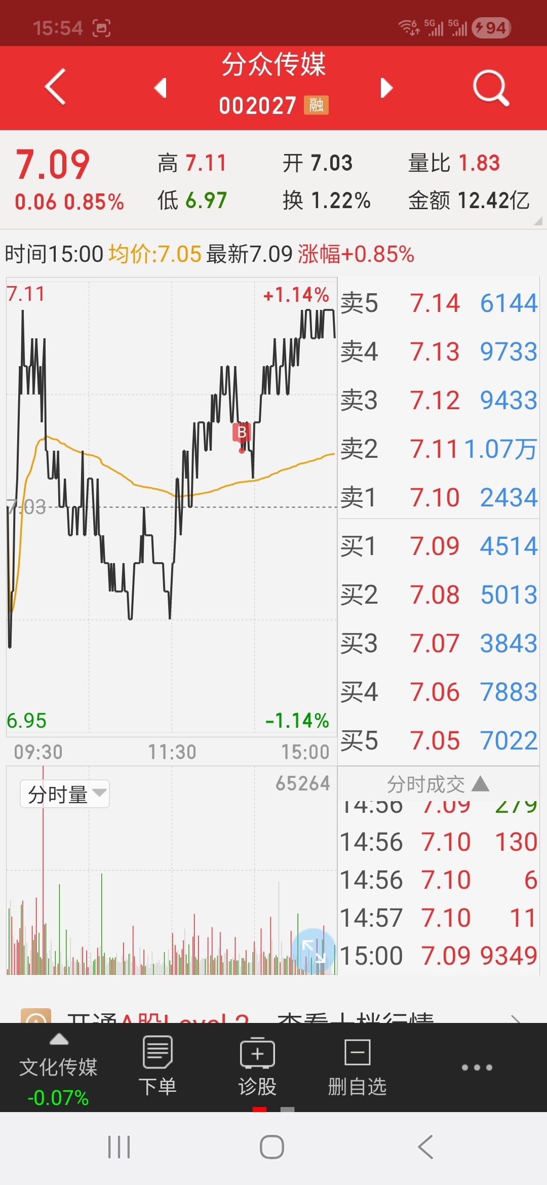 $分众传媒(SZ002027)$ 今日7.05元买了一点!