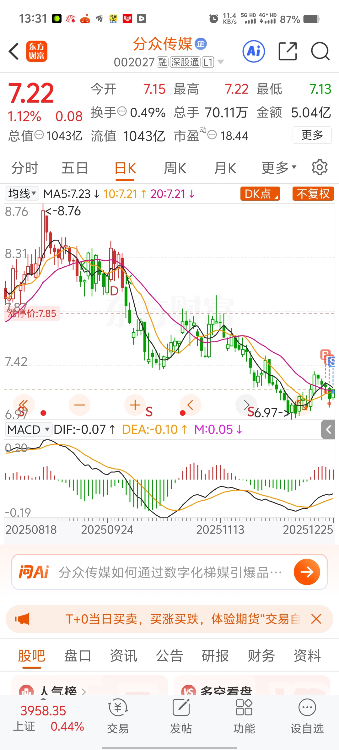 本想进来拿点股息,我怕你把我本金赚走一半。耗子尾汁,每天几分钱波动意义不大,也就挣条烟钱。