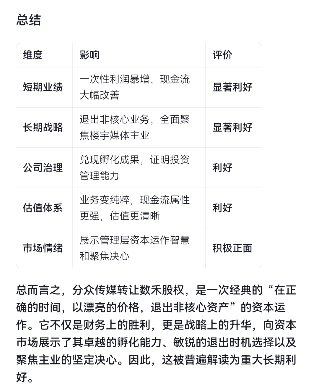 $分众传媒(SZ002027)$ 大利好,聚焦主业