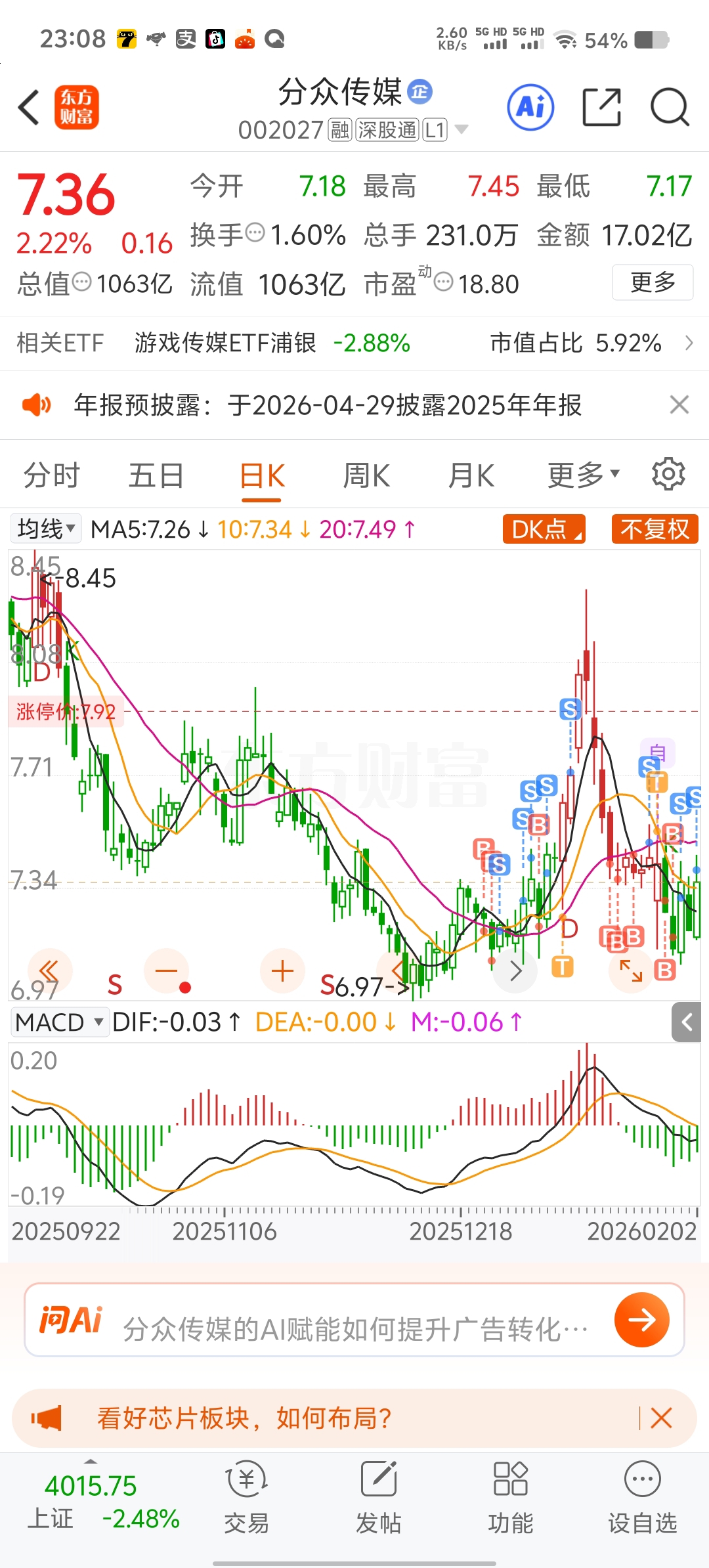 $分众传媒(SZ002027)$ 好票,明天至少拉到7.55以上。