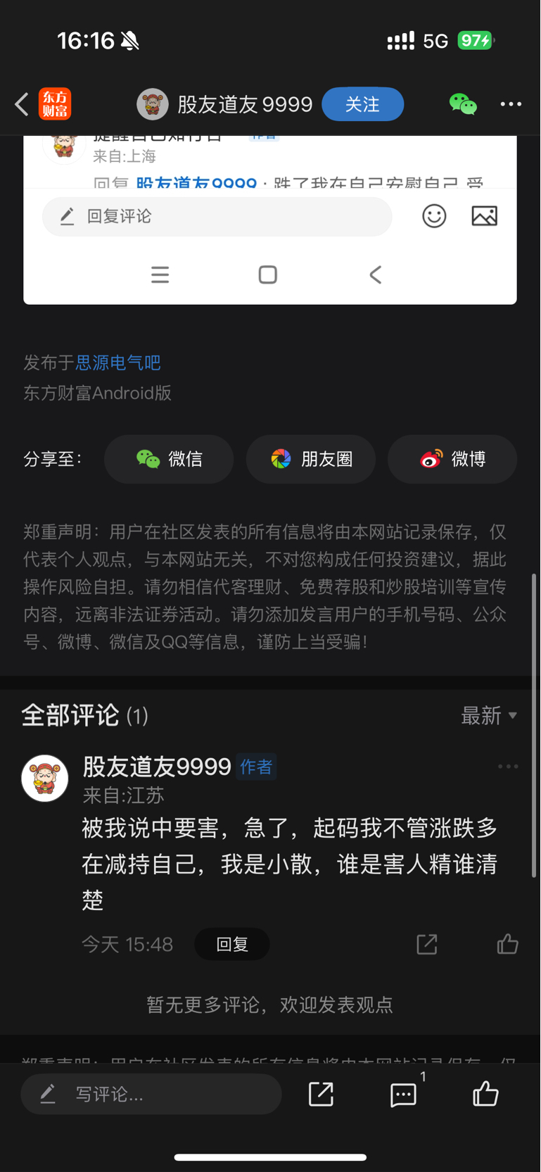 温馨提示: 1.根据《证券法》规定,禁止编造、传播虚假信息或者误导性信息,扰乱证券市场;2.用户在本社区发表的所有资料、言论等仅代表个人观点,与本网站立场无关,不对您构成任何投资建议。用户应基于自己的独立判断,自行决定证券投资并承担相应风险。《东方财富社区管理规定》