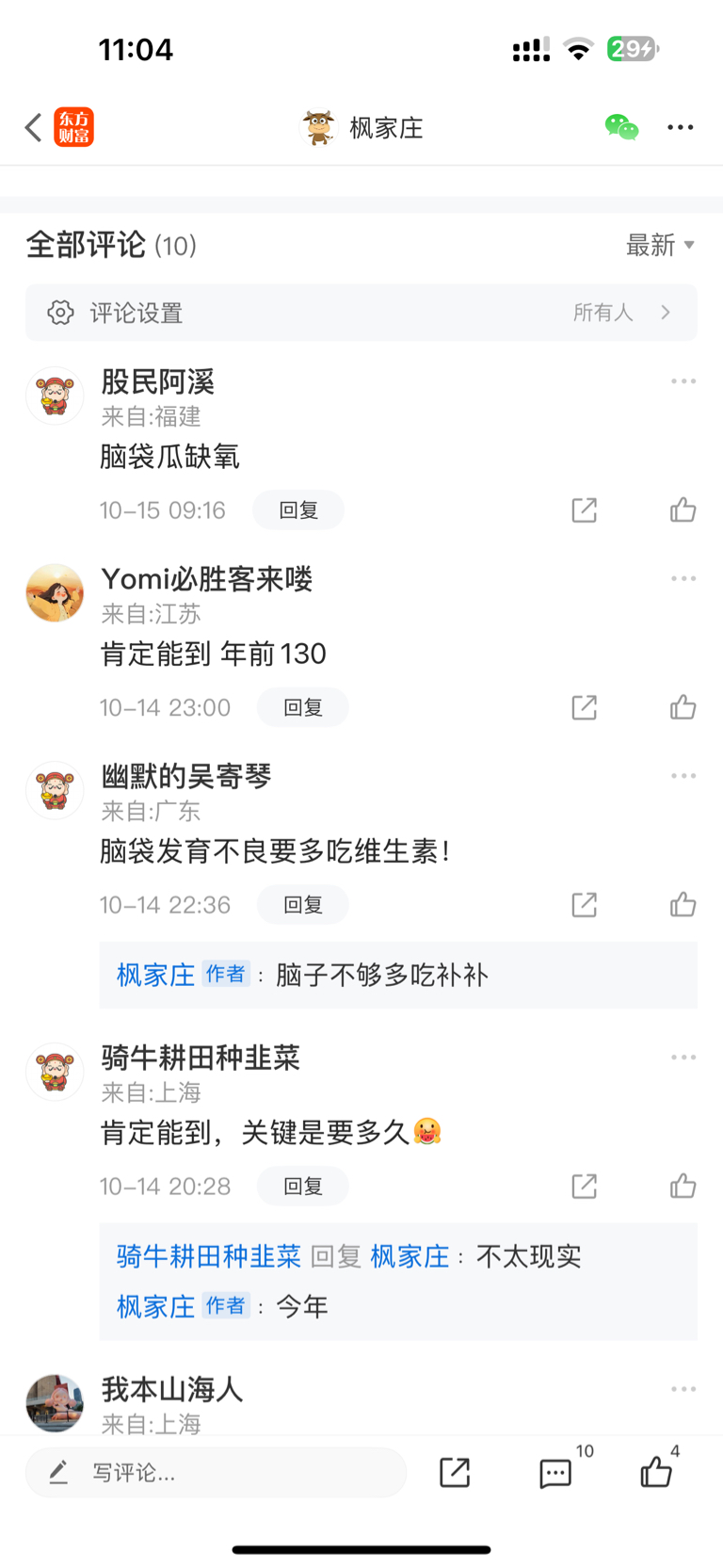 温馨提示: 1.根据《证券法》规定,禁止编造、传播虚假信息或者误导性信息,扰乱证券市场;2.用户在本社区发表的所有资料、言论等仅代表个人观点,与本网站立场无关,不对您构成任何投资建议。用户应基于自己的独立判断,自行决定证券投资并承担相应风险。《东方财富社区管理规定》