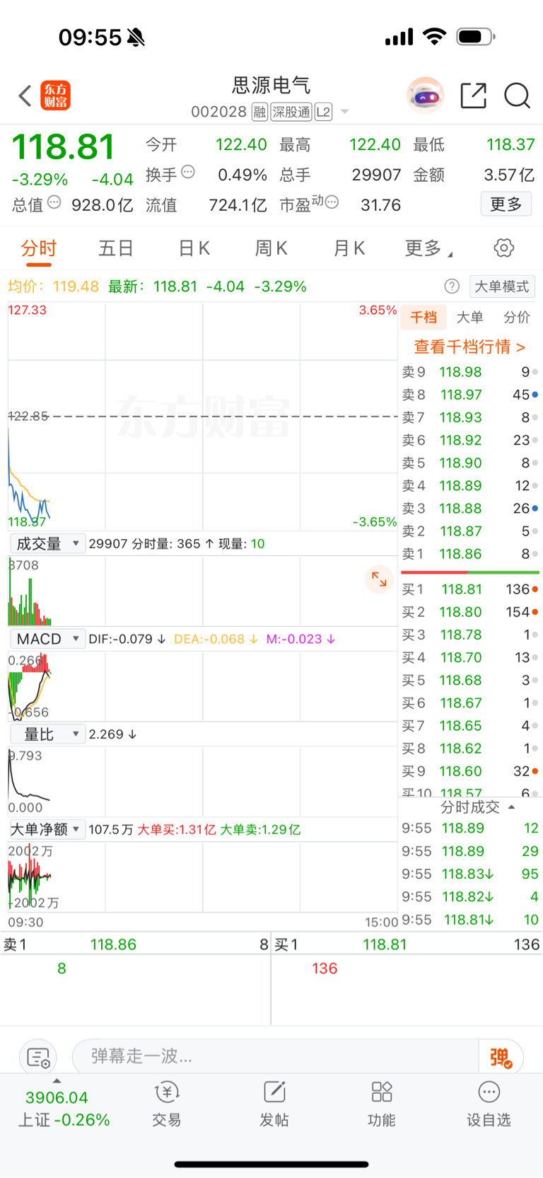 $思源电气(SZ002028)$ 挂了112 不知道能不能买到