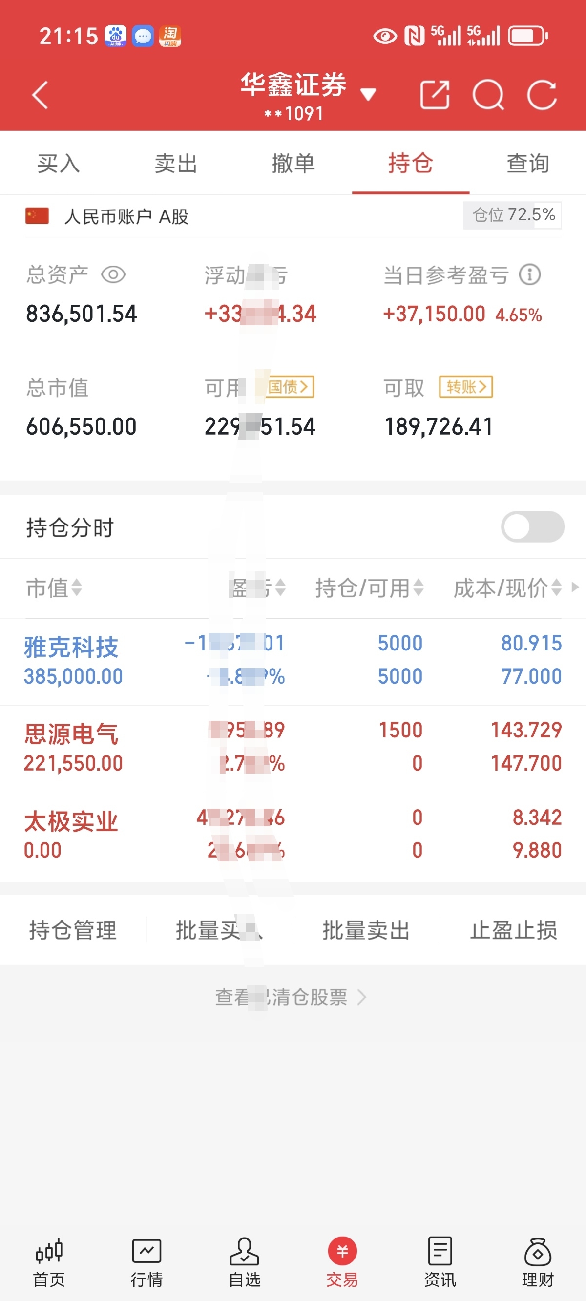 11月6日-美好记录生活第97天。入:思源电气。出:太极实业。持:雅克科技,思源