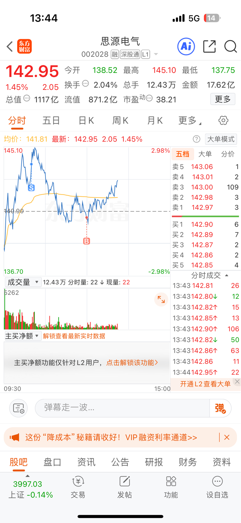 $思源电气(SZ002028)$ 哈哈,中午收盘前又买入了