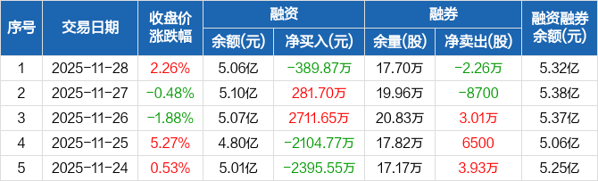 思源电气:融资净偿还389.87万元,融资余额5.06亿元(11-28)