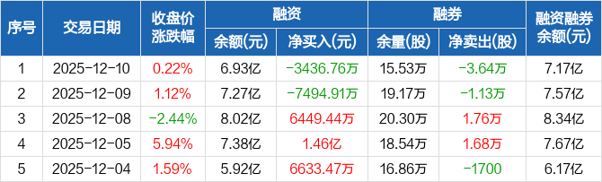 思源电气:融资净偿还3436.76万元,融资余额6.93亿元(12-10)