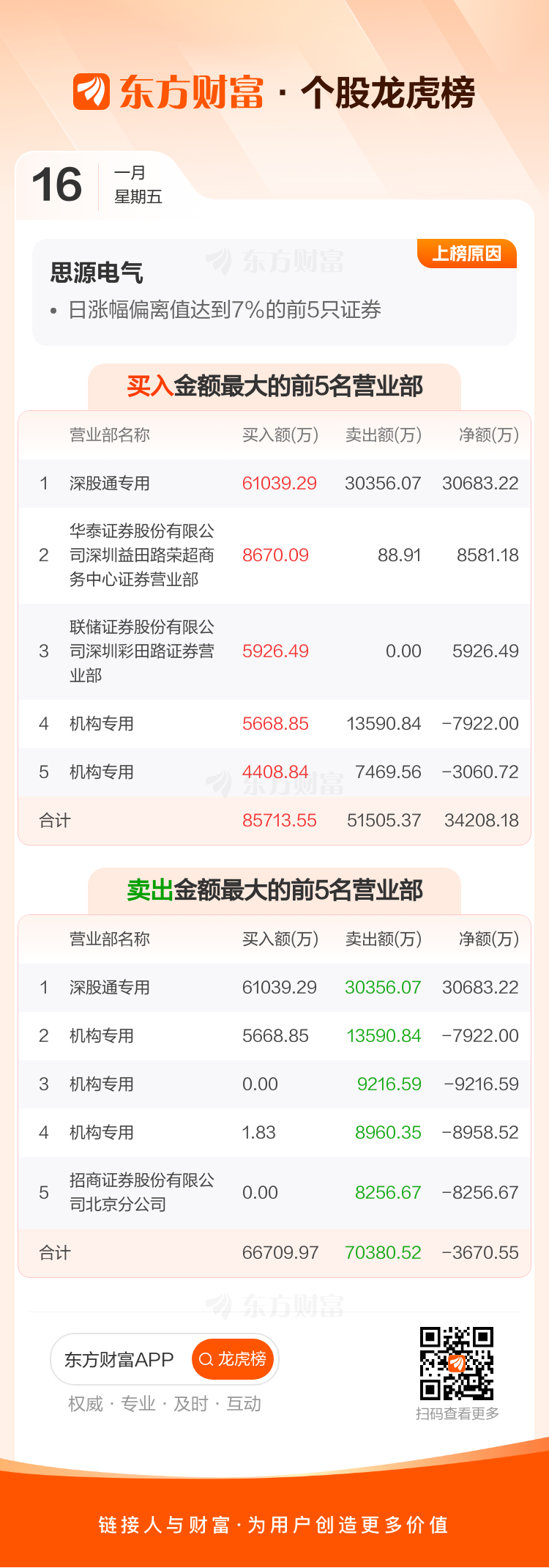 思源电气(002028)龙虎榜数据(01-16)