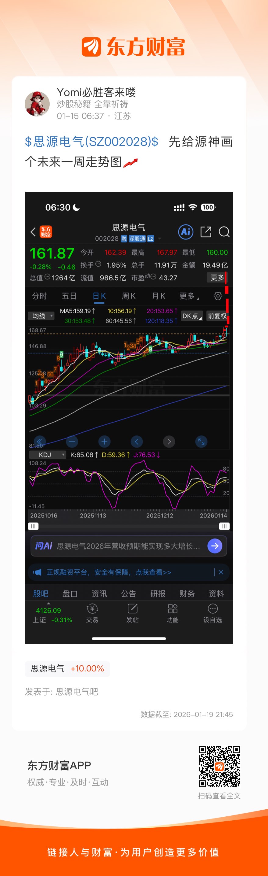 温馨提示: 1.根据《证券法》规定,禁止编造、传播虚假信息或者误导性信息,扰乱证券市场;2.用户在本社区发表的所有资料、言论等仅代表个人观点,与本网站立场无关,不对您构成任何投资建议。用户应基于自己的独立判断,自行决定证券投资并承担相应风险。《东方财富社区管理规定》