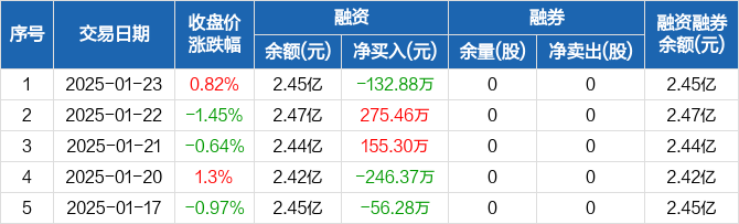 七匹狼:融资净偿还132.88万元,融资余额2.45亿元(01-23)