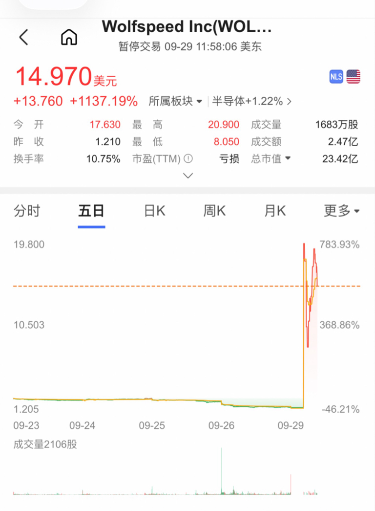昨晚美股WolfspeedInc,狼速的大长腿好好看!我们的狼,也是王者!是王者