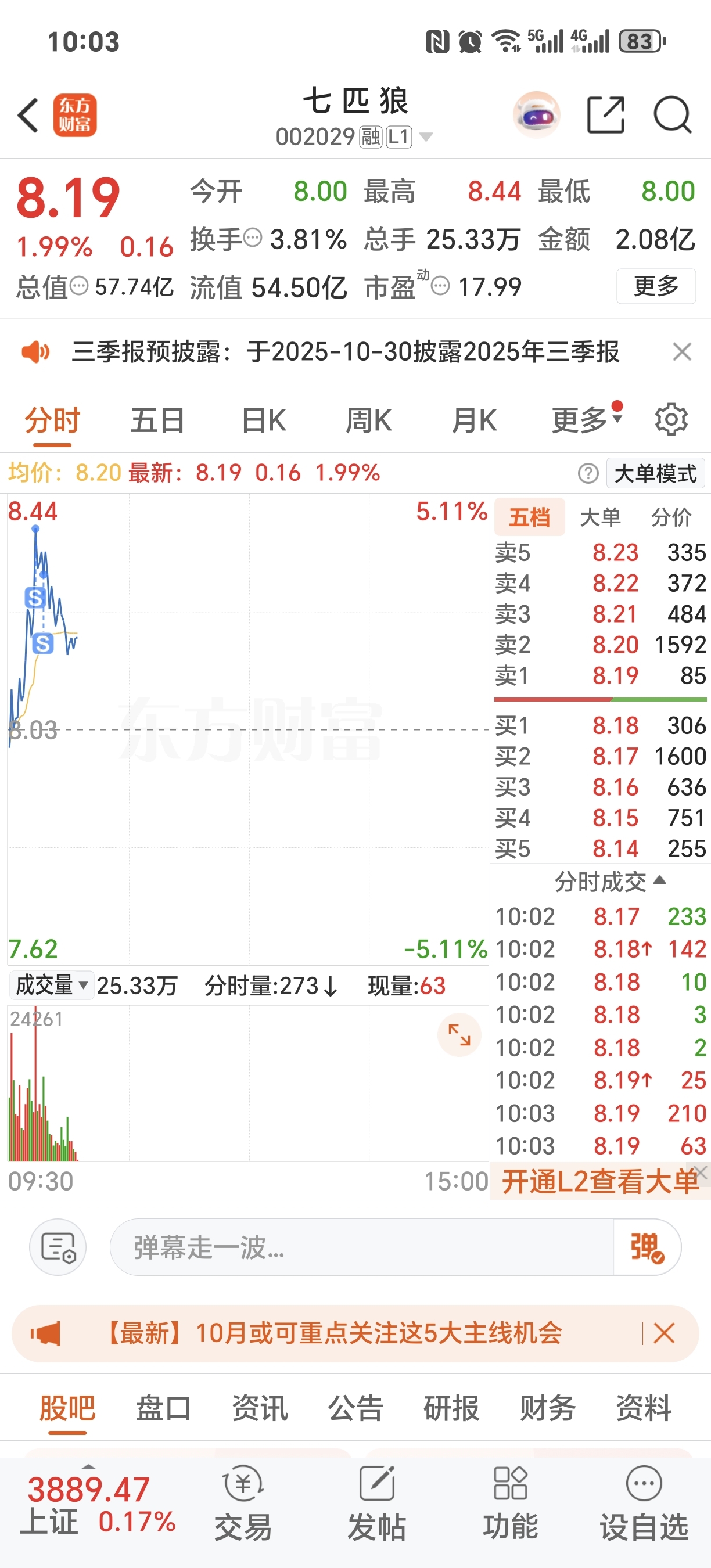 $七 匹 狼(SZ002029)$ 差点把我挂树上