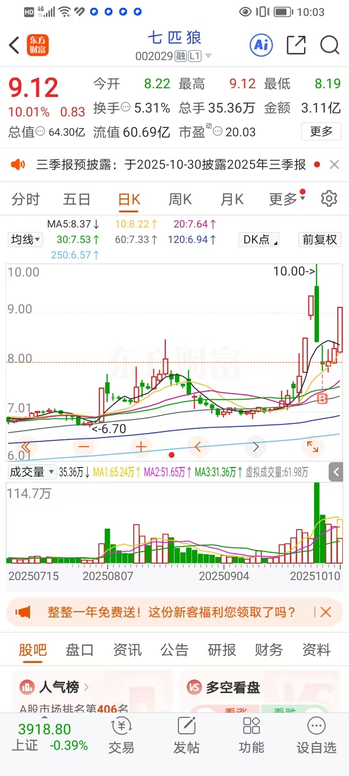 $七 匹 狼(SZ002029)$ 感觉又会炸板