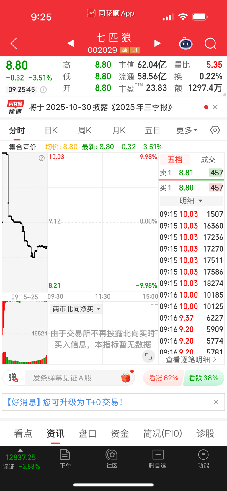 $七 匹 狼(SZ002029)$ 砸盘的人活该吃不到肉