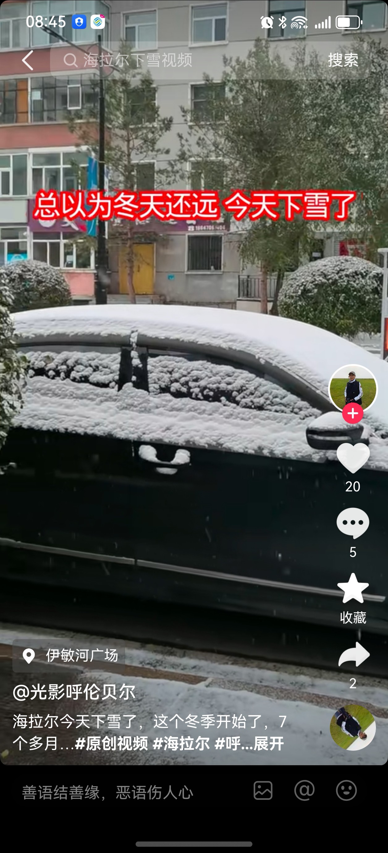 $七 匹 狼(SZ002029)$ 内蒙海拉尔下雪了,周末哈尔滨预报下雪,海宁皮城在哈尔滨有很大的商场。