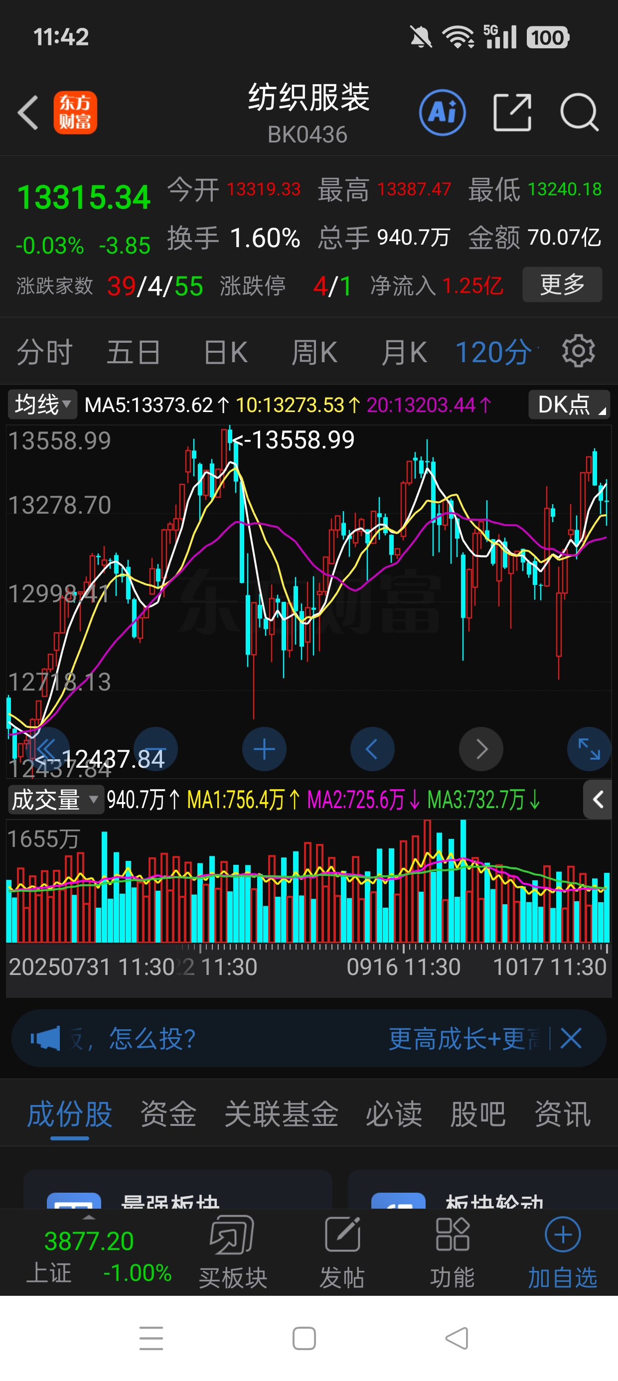 中短线没跑赢服装板块,可怜的娃。该摩尔线程,还沐曦,一边玩去