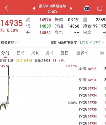 $七 匹 狼(SZ002029)$ 大盘收盘后,富时A50直线拉升!