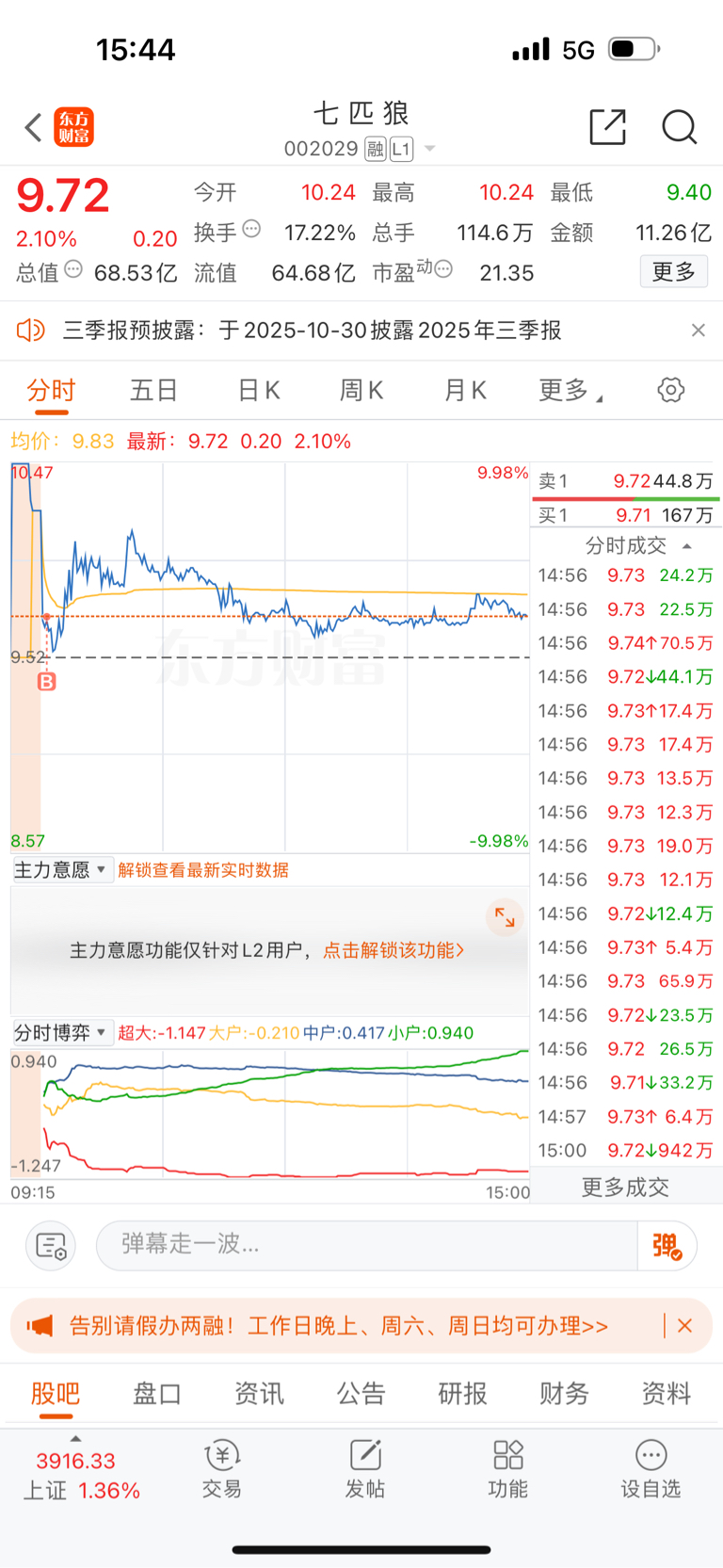 $七 匹 狼(SZ002029)$ 我这个点进的,明天都慌了,竞价我就割了