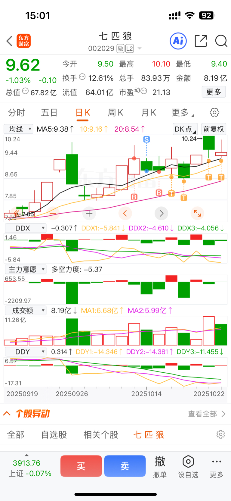 $七 匹 狼(SZ002029)$ 找到机会就T做低成本长期好看